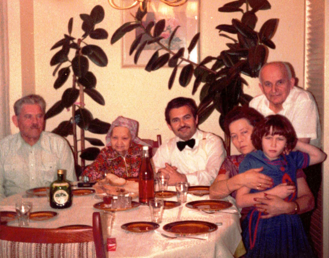 Lőrincz János (Lőrincz Konrád nagybátyja - a bal oldalon), '56-ban emigrált, mellette felesége, a jobb oldalon lévő idősebb nő a nagynénje, fölötte a sógora, 1969-ben. A Lőrincz testvérek gyűjteményéből