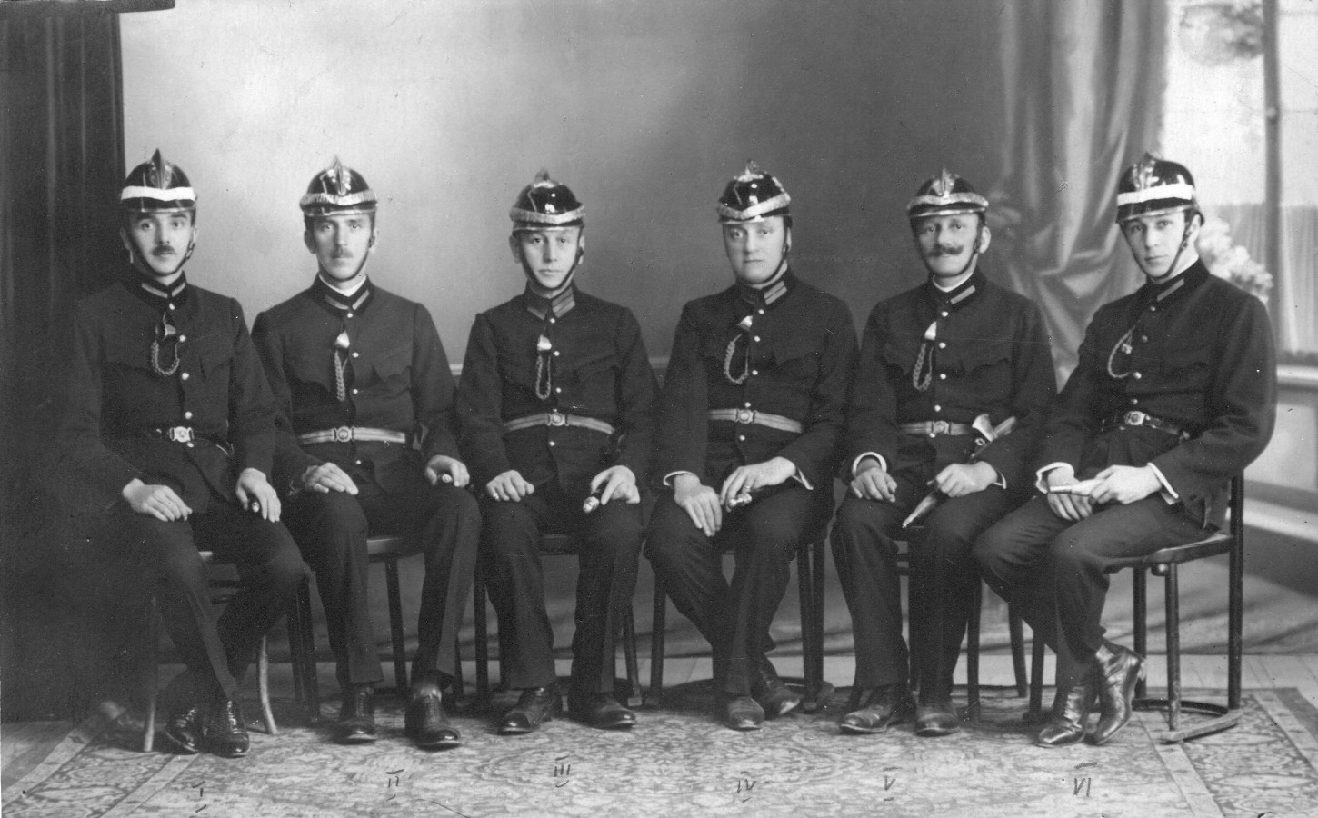 A comandamentul Asociației de Pompieri Voluntari din Gheorgheni, 1930. (Stânga/dreapta: Madaras István, Nagy István, Deés Kálmán, Lázár Gyula, Gáspár Balázs, Gergely Zsombor.)