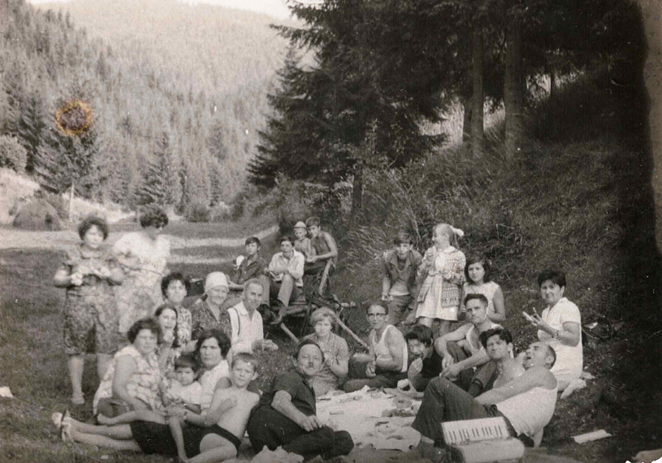 Id. Dezső Miklós (a két álló hölgytől jobbra a harmadik - fehér ingben) családjával, barátokkal kiránduláson feltételezhetően Csanódon a '60-as években. Gyűjtemény: név nélkül